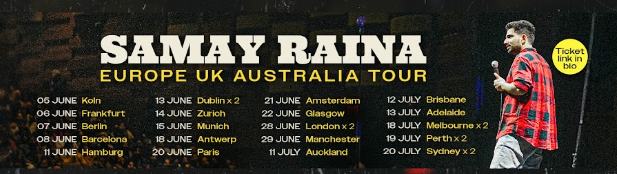 Samay Raina has officially announced a global comedy tour spanning: