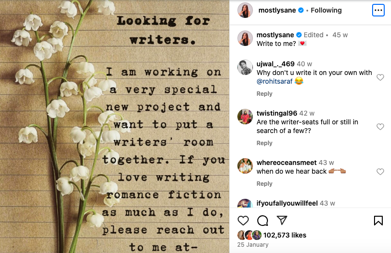 When Prajakta Koli announced her debut novel "Too Good to Be True," I couldn't help but think back to her call for writers earlier this year...